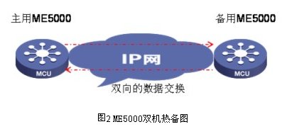 - ME5000采用雙機(jī)熱備技術(shù),2臺ME5000通過IP網(wǎng)絡(luò)(局域網(wǎng)、廣域網(wǎng))在線熱備,出現(xiàn)意外情況時,備份ME5000將及時接替原ME5000將會議繼續(xù)召開,不需要終端進(jìn)行任何操作,保障會議延續(xù)。