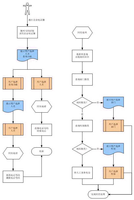 當(dāng)電話簿記錄中出現(xiàn)同名時(shí),可以定義同名的區(qū)分條件,如不同部門,不同性別等。在語音識(shí)別時(shí),根據(jù)區(qū)分條件提示主叫選擇。