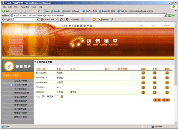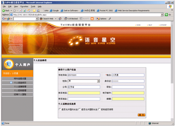 結(jié)合平臺(tái)座席與個(gè)人語音電話本實(shí)現(xiàn)給注冊(cè)用戶實(shí)現(xiàn)個(gè)人秘書服務(wù)。