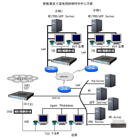基于iSX4000構(gòu)建的大型電視購物呼叫中心拓撲圖