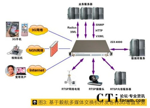 隨著中國(guó)3G用戶的日益增多,基于3G網(wǎng)絡(luò)的增值業(yè)務(wù)也日益受到各大運(yùn)營(yíng)商重視,而且運(yùn)營(yíng)商也寄希望于形形色色的增值業(yè)務(wù)能夠帶動(dòng)3G用戶的增長(zhǎng),針對(duì)這種狀況以及國(guó)內(nèi)三種運(yùn)營(yíng)商制式(TD-SCDMA、WCDMA、CDMA2000),毅航發(fā)布專門針對(duì)3G增值業(yè)務(wù)或2G-3G混合增值業(yè)務(wù)的真正一體化開發(fā)平臺(tái),基于此平臺(tái)開發(fā)者無需關(guān)心3G網(wǎng)絡(luò)接口、3G網(wǎng)絡(luò)制式、3G網(wǎng)絡(luò)信令及3G視頻編解碼而直接開發(fā)3G業(yè)務(wù)流程即可,是目前國(guó)內(nèi)外最簡(jiǎn)單、單機(jī)承載容量最大的3G增值業(yè)務(wù)開發(fā)平臺(tái),是在毅航通信 iSX4000 通用業(yè)務(wù)平臺(tái)的基礎(chǔ)上增加視頻模塊即可將原來在2G上的所有應(yīng)用平滑升級(jí)到3G,升級(jí)周期只需要1-2周即可,因此基于毅航增值業(yè)務(wù)平臺(tái)的3G示范應(yīng)用也很快會(huì)在中國(guó)三個(gè)不同制式的3G網(wǎng)絡(luò)上開通。