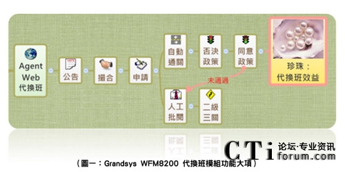 以Grandsys WFM8200為例,其所提供的班務(wù)管理模組,允許呼叫中心匯入Excel班表并提供主管以圖形拖拉調(diào)度班務(wù),而客服人員可以瀏覽器,進(jìn)行代換班之公告、撮合、申請,除了自動比對同意否決政策進(jìn)行,自動通關(guān)的判斷以外,班組長或排班師也可進(jìn)行人工批閱,可以說是呼叫中心入門的班務(wù)管理系統(tǒng)。