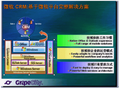 GrapeCity作為國內(nèi)第一個引入MSCRM的獨立解決方案供應(yīng)商,積累了相當豐富的實施經(jīng)驗,在這一領(lǐng)域擁有多項"第一"。同樣,GrapeCity已為多家客戶實施MSCRM3.0獲得成功的利好消息,也為Microsoft DynamicsTM CRM(MSCRM)3.0中文簡體版的正式發(fā)布錦上添花。