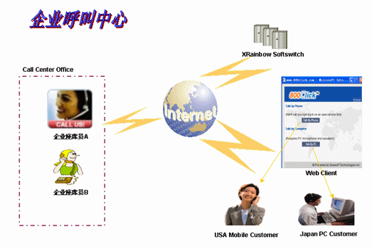 企業(yè)呼叫中心通過(guò)WEB方式解決可以提高10倍成交機(jī)會(huì),您的客戶將享受“在線客服”的免費(fèi)電話服務(wù)。很多人在訪問(wèn)商業(yè)網(wǎng)站的時(shí)候可能都有過(guò)這樣的經(jīng)歷:覺(jué)得網(wǎng)上提供的資料不夠詳細(xì),希望通過(guò)詢問(wèn)客服人員來(lái)獲取更細(xì)致和個(gè)性化的信息。用戶只要點(diǎn)擊一下網(wǎng)頁(yè)上服務(wù)中心的鏈接就可以和中心的客服人員進(jìn)行直接的溝通。用戶甚至不需要知道服務(wù)中心的號(hào)碼。使用戶獲得更為有效的直接通話服務(wù)。為您的網(wǎng)站建立起專業(yè)的呼叫中心,既是網(wǎng)絡(luò)推廣、網(wǎng)絡(luò)營(yíng)銷的助手又是客戶關(guān)系管理的專家。