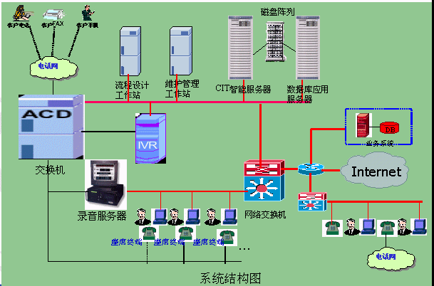 - 接入平臺(tái)采用呼叫中心專用交換設(shè)備,局網(wǎng)帶寬100M