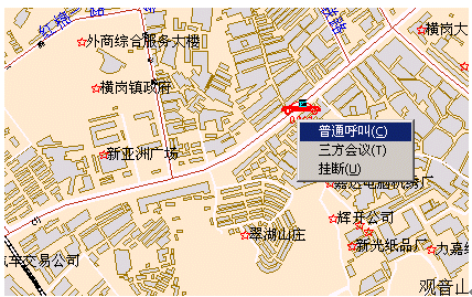 - 可視化指揮調(diào)度:在電子地圖上點(diǎn)擊相應(yīng)的圖標(biāo)即可撥打警力單位的固定電話以及向GPS巡邏車以及集群終端/公安分局/派出所/聯(lián)動單位電話號碼/手機(jī)號碼發(fā)起單呼和組呼;同時與接處警席配合使用,可以實(shí)現(xiàn)可視化指揮調(diào)度與非可視化指揮調(diào)度的全方位立體的混合指揮調(diào)度。