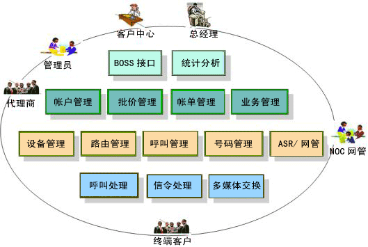 | 呼叫處理 | 設(shè)計(jì)原則: 處理接受終端用戶的呼叫請(qǐng)求。 代理向policy請(qǐng)求呼叫認(rèn)證系統(tǒng) 中每一個(gè)呼叫,負(fù)責(zé)上報(bào)給policy,并接受policy的指示。 功能: 設(shè)備管理:包括:設(shè)備信息管理、設(shè)備號(hào)碼管理、用戶的路由策略決定,統(tǒng)計(jì)分析、綜合查詢等等。 路由管理:為管理者全方位地管理系統(tǒng)擁有的路由資源,并對(duì)這些資源進(jìn)行開(kāi)發(fā)提供決策支持。如為不同的客戶不同的要求,提供最適合的路由組合。 呼叫管理:監(jiān)控系統(tǒng)現(xiàn)在正在進(jìn)行的通話,讓管理者實(shí)時(shí)了解系統(tǒng)當(dāng)前的業(yè)務(wù)狀況。 ASR統(tǒng)計(jì):讓管理員實(shí)時(shí)了解系統(tǒng)的近一段時(shí)間的各類用戶,各路由的接通率,平均通話時(shí)長(zhǎng)等。 網(wǎng)管:提供管理員管理每個(gè)設(shè)備的信息,并提供遠(yuǎn)程登錄管理到Internet上任何注冊(cè)到系統(tǒng)上的設(shè)備。 帳戶管理:管理系統(tǒng)中的每一個(gè)帳戶,支持多級(jí)的帳戶管理。上一級(jí)可以依據(jù)權(quán)限對(duì)下一級(jí)進(jìn)行管理。 批價(jià)管理:為各種帳戶提供與其相適應(yīng)的價(jià)格策略,以最低的成本最有效地激勵(lì)客戶。如定制打折,套餐等不同的定價(jià)策略. 帳單管理:為每個(gè)帳戶提供定時(shí)準(zhǔn)確帳單收據(jù)?缮 Word、Excel、txt 等不同格式的帳單明細(xì)報(bào)表和統(tǒng)計(jì)報(bào)表。 業(yè)務(wù)管理:為每個(gè)用戶提供各種不同用戶所需要的業(yè)務(wù),并能快速的提供新的業(yè)務(wù)。如呼叫轉(zhuǎn)移,呼叫等待等業(yè)務(wù)。 |