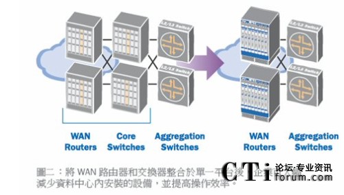 今天,許多WAN服務(wù)是由以太網(wǎng)設(shè)備提供的,因此必須在廣域網(wǎng)和局域網(wǎng)設(shè)備之間進(jìn)行介質(zhì)轉(zhuǎn)換,而新一代交換機(jī)則可省去這一步驟。許多新式交換平臺(tái)可提供穩(wěn)定的路由功能,并支持OC-12和其他廣域網(wǎng)接口,使得IT人員能夠?qū)V域網(wǎng)路由和局域網(wǎng)核心交換功能全部整合到下一代交換機(jī)平臺(tái)中。通過扁平化的網(wǎng)絡(luò)架構(gòu),企業(yè)可減少資本支出和操作費(fèi)用,同時(shí)還可降低網(wǎng)絡(luò)復(fù)雜度并提升正常運(yùn)營(yíng)的時(shí)長(zhǎng)。