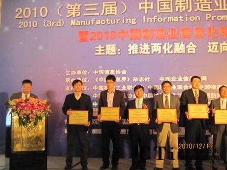 CTI論壇(ctiforum)12月27日消息(記者 潘婷婷):12月16日,由中國信息協(xié)會聯(lián)合我國十幾家制造業(yè)行業(yè)協(xié)會共同舉辦的“2010(第三屆)中國制造業(yè)信息化推進(jìn)大會暨中國制造業(yè)信息化年度頒獎盛典”在北京成功舉行。中國信息協(xié)會會長盧時徹、中國機(jī)械工業(yè)聯(lián)合會特別顧問、國家信息化專家咨詢委員會委員朱森第、工業(yè)和信息化部信息化推進(jìn)司安筱鵬等領(lǐng)導(dǎo)出席此次活動并發(fā)表演講。會上,八百客獲得“2010年度CRM領(lǐng)軍企業(yè)”大獎,至此,八百客已經(jīng)斬獲“中國云計算領(lǐng)軍企業(yè)”和“CRM領(lǐng)軍企業(yè)”雙料大獎,為2010年畫上了圓滿的句號。