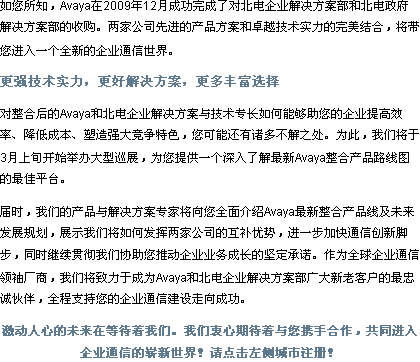 [Avaya/Nortel整合產(chǎn)品線渠道招募會(huì)10城市]