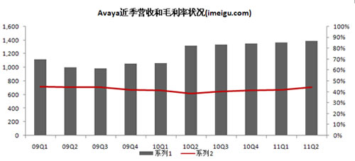 Avaya營(yíng)收由產(chǎn)品銷(xiāo)售收入和服務(wù)收入構(gòu)成,其中產(chǎn)品包括統(tǒng)一通信(將視頻,語(yǔ)音、傳真、電子郵件、WEB,移動(dòng)短消息和多媒體數(shù)據(jù)等所有信息類(lèi)型集合為一體)、聯(lián)絡(luò)中心、中小企業(yè)通訊和數(shù)據(jù)網(wǎng)絡(luò)解決方案,產(chǎn)品銷(xiāo)售分別占2009、2010財(cái)年總營(yíng)收的46%、51%。服務(wù)收入主要來(lái)自相關(guān)產(chǎn)品的維護(hù)、支持和設(shè)計(jì)整合等專(zhuān)業(yè)性服務(wù)。隨著新產(chǎn)品的繼續(xù)推出和企業(yè)通信開(kāi)支的增長(zhǎng),Avaya將在已有客戶(hù)基數(shù)上進(jìn)一步取得營(yíng)收的增加。