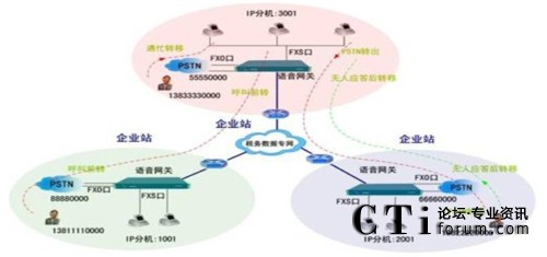 從外部撥打進(jìn)來(lái),不改變客戶(hù)撥號(hào)習(xí)慣;從內(nèi)部撥出去,通過(guò)不同的被叫前綴,智能路由選擇走VoIP電話(huà)線路或走PSTN線路,不改變?cè)械膿芴?hào)習(xí)慣。
