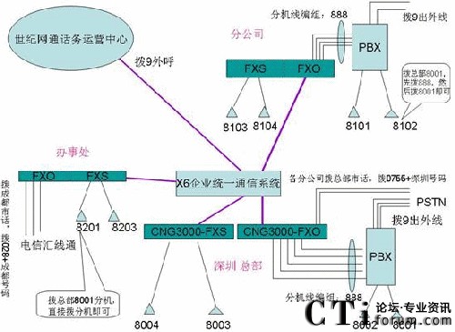 總公司和各個分公司之間語音電話和傳真交流密集,并且每周會有1~2次10人以內的電話會議召開?蛻衄F在公布出去的是總公司深圳的號碼 075526668888,各分公司公布當地的市話號碼或業(yè)務人員的手機。