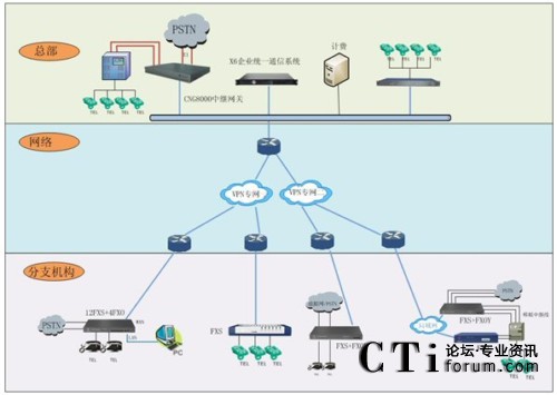 位于不同VPN網(wǎng)絡的分支機構(gòu)統(tǒng)一接入X6系統(tǒng)進行交換轉(zhuǎn)發(fā)。