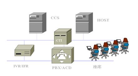 智能化網(wǎng)絡(luò)(Intelligent Network)、排隊機(ACD)、計算機語音集成(CTI)、自動語音/傳真響應(yīng)設(shè)備(IVR/IFR)、業(yè)務(wù)系統(tǒng)主機HOST、座席(Agent)、信息板(Wall
