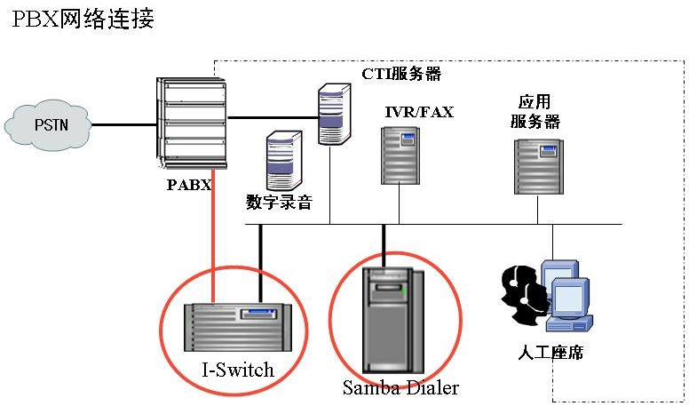 Samba Dialer和潤迅通信哈里斯數(shù)字程控交換機(jī)利用ISDN PRI進(jìn)行匯接,共享現(xiàn)有話機(jī),大大保護(hù)了投資。Samba Dialer直接通過PRI進(jìn)行信令檢測(cè),不依賴程控交換機(jī)的CTI功能,這樣可以避免大量外撥電話對(duì)CTI資源的占用而影響呼入業(yè)務(wù)的運(yùn)作。另外,交換機(jī)的CTI接口一般不具備很高的穩(wěn)定性,Samba