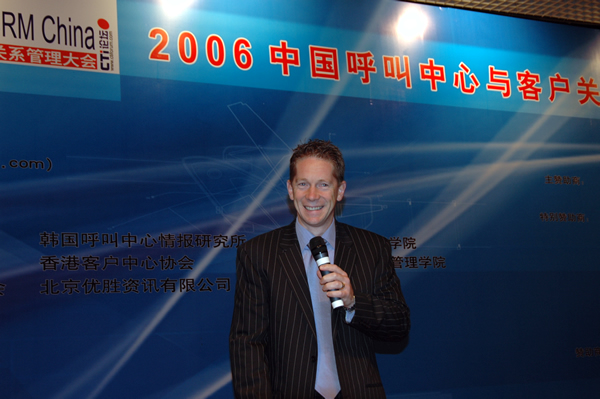 2006年4月3日至5日,2006中國呼叫中心與客戶關(guān)系管理大會在北京國際會議中心隆重召開,以下是K8主題演講實(shí)錄:西蒙.克瑞斯:早上好!這是我的助手,大家歡迎!我想傳達(dá)呼叫中心的問題節(jié)奏會快一點(diǎn),有高級呼叫中心十個課題。不是對初學(xué)者的,也不是對新呼叫中心的,是幫助呼叫中心行業(yè)能夠成熟的,也就是說呼叫中心行業(yè)的兒童不宜的題材!人人談呼叫中心的時候就談到這個模型(PPT)三個因素,人、流程和技術(shù)。但是這個模型沒有包括真正只有戰(zhàn)略意義的呼叫中心的因素,這個模型對運(yùn)行家、工廠是非常有效的。現(xiàn)在我們用的這個模型是叫(PPT)模型,F(xiàn)在言歸正傳,開始!