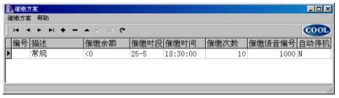 催繳時(shí)間:開(kāi)始啟動(dòng)催繳的時(shí)間,該時(shí)間只是要求啟動(dòng)的時(shí)間,如果此時(shí)沒(méi)有空閑語(yǔ)音線路,則會(huì)等待空閑后才真正開(kāi)始。