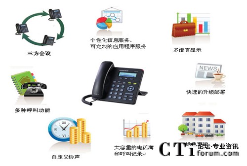 - 用戶自定義鈴聲,SRTP,SIP over TLS,支持多種語(yǔ)言和XML,支持個(gè)性化的信息服務(wù)、可定制的應(yīng)用程序服務(wù)支持和多語(yǔ)言顯示(例如:本地天氣等)。