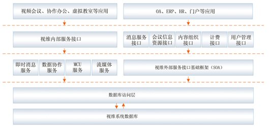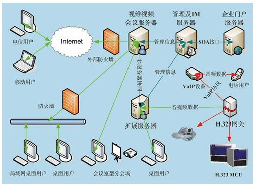 視維系統(tǒng)是一個(gè)基于IP網(wǎng)絡(luò)的綜合業(yè)務(wù)通訊平臺(tái),通過(guò)多網(wǎng)絡(luò)接入方式實(shí)現(xiàn)網(wǎng)通、電信、聯(lián)通等用戶間高速互通;通過(guò)H.323模塊將企業(yè)內(nèi)部原有的硬件設(shè)備與視維系統(tǒng)鏈接起來(lái),有效的節(jié)約了投資;其他如SIP模塊,短信模塊,固網(wǎng)電話接入等都可以根據(jù)用戶需要進(jìn)行擴(kuò)展。視維系統(tǒng)可以支持分布式視頻服務(wù)器集群,可利用企業(yè)內(nèi)部網(wǎng)絡(luò)或者互聯(lián)網(wǎng)構(gòu)建超大規(guī)模企業(yè)綜合通訊平臺(tái);凇懊嫦蚍⻊(wù)體系架構(gòu)(SOA)”設(shè)計(jì)架構(gòu),實(shí)現(xiàn)很靈活地方便地與其業(yè)務(wù)系統(tǒng)如OA,HR,CRM,