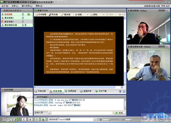 CTI論壇(ctiforum)05月19日消息: 自08年攜手視維Super-V視頻會議以來,中石油雅安分公司銷售部的日常工作會議高效及時地開展,尤其是在5.12四川大地震后,工作不但沒有中斷,而且足不出戶就可以給上級領(lǐng)導(dǎo)匯報工作,與同事交流營銷心得。而在以前,只能通過電話或者郵件,甚至長途跋涉聚集到一個地方舉行會議,既浪費(fèi)時間又增加營銷成本。這是繼中國重汽、新加坡協(xié)美集團(tuán)等跨國集團(tuán)公司倡導(dǎo)信息時代新營銷主義,實現(xiàn)高效運(yùn)營的又一典型案例應(yīng)用。