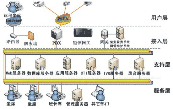 本方案采用多媒體統(tǒng)一服務(wù)的呼叫中心中間件,不僅支持傳統(tǒng)的PBX系統(tǒng),而且支持最新的IP PBX融合通信系統(tǒng),使小型呼叫中心也可以享受到以前只有大型呼叫中心才具備的系統(tǒng)功能,滿足企業(yè)對CTI技術(shù)日新月異的需求,為企業(yè)提供強(qiáng)大、穩(wěn)定、高性價(jià)比的CTI平臺。