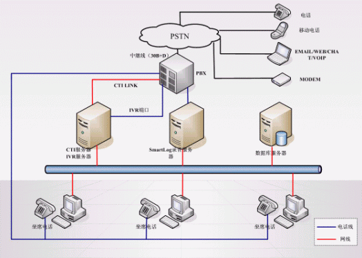 中科訊博一體化呼叫中心平臺采用三層體系結(jié)構(gòu):