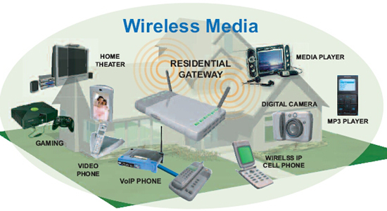在家中傳送廣播質(zhì)量的視頻將需要住宅網(wǎng)關整合多種有線和無線技術、安全特性和服務質(zhì)量(QoS)能力。住宅網(wǎng)關需要支持最新的無線連網(wǎng)技術,例如目前的802.11g以及暫露頭角的802.11n、802.11d/e和802.11r標準。多種有線家庭連網(wǎng)技術也在考慮之內(nèi),所以住宅網(wǎng)關應能支持以太網(wǎng)、同軸電纜多媒體聯(lián)盟(MOCA)、家用電話線網(wǎng)絡聯(lián)盟(HPNA)、家庭插電聯(lián)盟(HPPA)和通用電力線協(xié)會(UPA)等機構(gòu)推出的有線家庭聯(lián)網(wǎng)技術。