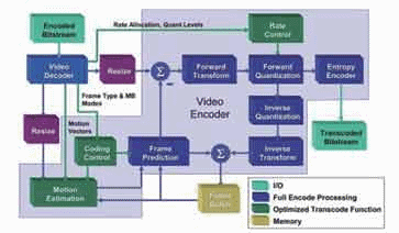 過(guò)去幾年來(lái),業(yè)界針對(duì)轉(zhuǎn)碼工作提出了幾種不同的方法,可提高處理與存儲(chǔ)器資源的使用效率。大多數(shù)這種方案都建立在這樣一種認(rèn)識(shí)基礎(chǔ)之上,即我們能通過(guò)更先進(jìn)的技術(shù)對(duì)初始編碼過(guò)程中創(chuàng)建的量子化和頻率域信息進(jìn)行修改,更好地加以利用,摒棄其中無(wú)用的東西,而不必簡(jiǎn)單地對(duì)原始視頻內(nèi)容進(jìn)行重構(gòu)。