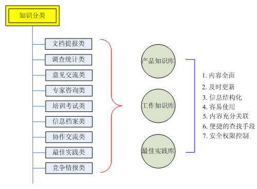 總結(jié)起來(lái)應(yīng)包括下列6個(gè)子系統(tǒng):知識(shí)庫(kù)子系統(tǒng)、培訓(xùn)考試子系統(tǒng)、專(zhuān)家網(wǎng)絡(luò)子系統(tǒng)、競(jìng)爭(zhēng)情報(bào)子系統(tǒng)、協(xié)作交流子系統(tǒng)、溝通交流子系統(tǒng)。
