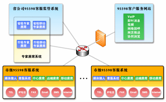 在電力客戶服務(wù)中心系統(tǒng)解決方案中,我們采用了更加先進(jìn)的第四代呼叫中心系統(tǒng)作為客服系統(tǒng)的平臺(tái)?梢詫(shí)現(xiàn)的客戶聯(lián)絡(luò)方式已經(jīng)不僅僅局限于傳統(tǒng)的語音和傳真的呼叫形式,網(wǎng)絡(luò)電話、網(wǎng)絡(luò)傳真、Email、短消息、即時(shí)消息、互聯(lián)網(wǎng)應(yīng)用等都是與客戶聯(lián)絡(luò)的重要方式,涉及到的媒體載體也不僅是PSTN,還有基于VoIP技術(shù)的現(xiàn)代網(wǎng)絡(luò)、無線網(wǎng)絡(luò)等;也就是說第四代呼叫中心系統(tǒng)是一個(gè)融合網(wǎng)絡(luò)、語音、數(shù)據(jù)庫、視頻和安全技術(shù)的綜合信息服務(wù)平臺(tái)。整個(gè)95598電力客戶服務(wù)系統(tǒng)是由呼叫中心子系統(tǒng)和業(yè)務(wù)處理子系統(tǒng)共同構(gòu)成。