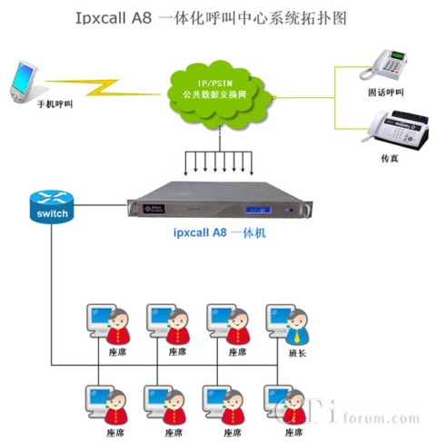 ipxcall A8呼叫中心融合IP-PBX和傳統(tǒng)呼叫中心功能于一體,采用先進的計算機電話集成技術,結合客戶的當前業(yè)務和未來業(yè)務發(fā)展的實際情況,協(xié)助用戶快速建立一個功能全、易使用、易維護的一體化呼叫中心。