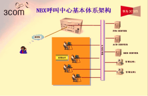 - 華為-3Com NBX采用數(shù)據(jù)包交換技術(shù),實(shí)現(xiàn)了語(yǔ)音與數(shù)據(jù)的融合。NBX呼叫中心系統(tǒng)平臺(tái)可以為客戶(hù)服務(wù)人員提供軟件和硬件的IP電話終端,用戶(hù)只需將坐席PC或IP話機(jī)接到桌面網(wǎng)口即可,無(wú)須重新部署語(yǔ)音線路,同時(shí)利用語(yǔ)音與數(shù)據(jù)融合的技術(shù)使得客服中心實(shí)現(xiàn)了統(tǒng)一的通信網(wǎng)絡(luò),減少的2套布線的繁瑣,大大降低了系統(tǒng)的維護(hù)及管理的工作量。