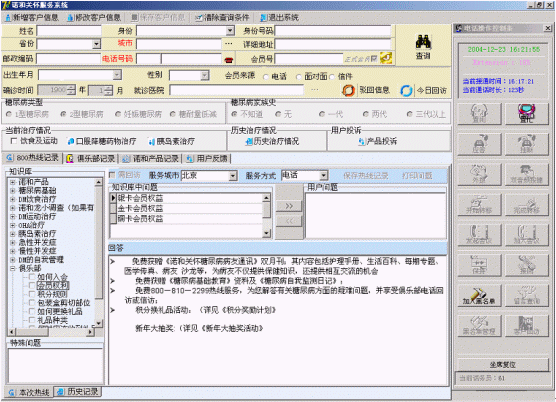 諾和關(guān)懷糖尿病服務(wù)中心的服務(wù)坐席可以實(shí)現(xiàn)患者信息的同步提示功能,當(dāng)電話被分配至坐席的同時(shí),患者的資料信息也同步出現(xiàn)在PC終端上。同時(shí)坐席終端可以自動(dòng)記錄對(duì)方的電話號(hào)碼,也可以實(shí)時(shí)顯示正在排隊(duì)等待的人數(shù),提示服務(wù)人員加快業(yè)務(wù)受理速度。