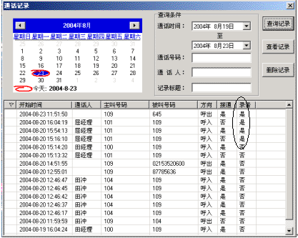 當(dāng)您在接打電話時,可以利用 NBX-TCA對當(dāng)前的通話進行錄音,以方便您對重要信息的記錄和查找。您可以在通話記錄中對已錄音的記錄進行查找,如下圖所示。打開通話記錄,選擇按錄音查找方式查看已有的錄音即可。