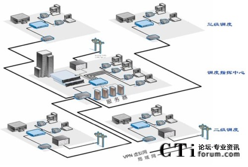 根據(jù)實(shí)際情況,總部可以部署調(diào)度控制中心,遠(yuǎn)端部署二級調(diào)度和三級調(diào)度終端,PSTN網(wǎng)關(guān)可以根據(jù)實(shí)際需要部署在任一點(diǎn)位。