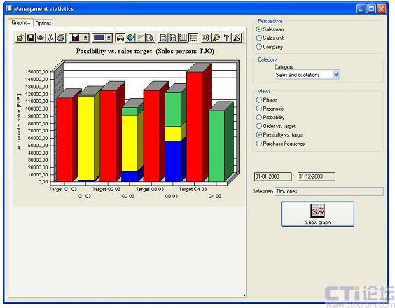 使企業(yè)用戶可以獲得與銷售相關(guān)的主要信息的圖形化視圖。通過(guò)該方案能夠簡(jiǎn)化機(jī)會(huì)和管道管理,由此可獲得銷售和營(yíng)銷成果的即時(shí)概況,同時(shí)可以提供銷售和營(yíng)銷經(jīng)理與其團(tuán)隊(duì)之間的有效協(xié)作。企業(yè)可通過(guò)系統(tǒng)建立和監(jiān)視銷售單位中每個(gè)成員的銷售目標(biāo),并可以快速方便地瀏覽或修改該目標(biāo),能夠快捷地獲得季度或年度目標(biāo)的即時(shí)概況,并且使用直觀的圖形化圖表顯示這些關(guān)鍵數(shù)據(jù)和數(shù)據(jù)趨勢(shì)。管理層還可以對(duì)銷售歷史的任意時(shí)間段中的銷售人員相關(guān)的收入和支出、盈利和虧損數(shù)據(jù)進(jìn)行分析和比較。