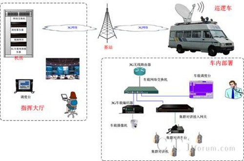 通過(guò)3G公網(wǎng)實(shí)現(xiàn)指揮中心和應(yīng)急車之間的網(wǎng)絡(luò),保證語(yǔ)音視頻通過(guò)3G公網(wǎng)傳輸。