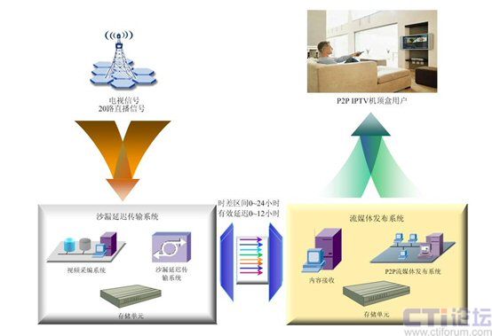 - 延遲時(shí)間自由設(shè)置。根據(jù)國(guó)家之間時(shí)差的不同,傳輸延遲時(shí)間可以設(shè)置從3分鐘到24小時(shí)的任意時(shí)長(zhǎng),真正實(shí)現(xiàn)時(shí)移電視。