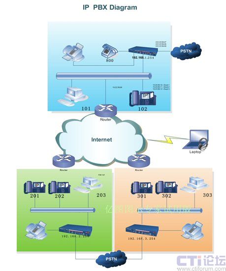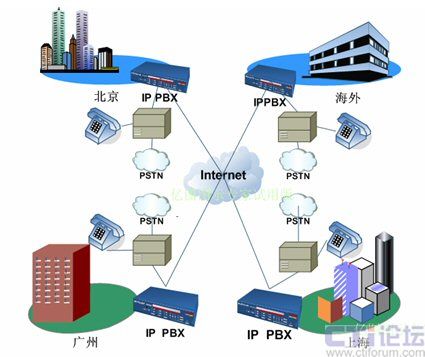 PBX接入網(wǎng)絡(luò)就意味著您的分支機(jī)構(gòu)能夠完全拋棄PSTN直接通話。在此我們建議您使用專線接入方式并在分支機(jī)構(gòu)間建立VPN已保證更好的通話質(zhì)量和網(wǎng)絡(luò)安全性。