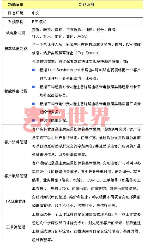 呼叫中心是企業(yè)和客戶互動的溝通平臺,要真正有效管理客戶服務(wù),優(yōu)化客戶服務(wù)處理流程,座席應(yīng)用軟件是呼叫中心建設(shè)的關(guān)鍵,座席應(yīng)用軟件與企業(yè)后臺各個業(yè)務(wù)系統(tǒng)有機(jī)結(jié)合,處理包括業(yè)務(wù)咨詢、信息查詢、投訴建議、業(yè)務(wù)受理等呼入業(yè)務(wù),以及客戶回訪、滿意度調(diào)查、電話營銷和派工等呼出業(yè)務(wù)。