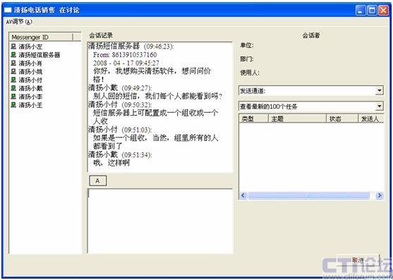 有了短信互動(dòng),那么給出差在外的員工發(fā)通知就容易了。同時(shí),外出的員工也可以隨時(shí)將信息發(fā)回給企業(yè)內(nèi)部的同事,甚至還可以同時(shí)通知到多人。這就是企業(yè)即時(shí)通信的組播能力也被發(fā)揮出來(lái)。