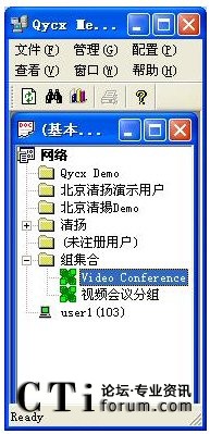 系統(tǒng)已經(jīng)默認(rèn)將這三個賬戶加入了分組。如上圖所示。 這樣客戶端運行起來以后就可以發(fā)起視頻會議進行視頻會議了,不需要再在服務(wù)器端進行任何操作。這三個賬戶可以隨意的更改密碼、如果不想使用這三個賬戶名,可以刪除重新建立賬戶名,除此以外,還可以建立新的賬戶,并加入分組。這些操作都是在服務(wù)器端進行的。詳細的操作請參看用戶手冊或者是FLASH教程。有了用戶名和密碼以后,無論走到哪里,使用任意一臺電腦登錄自己的帳號,就可以參加會議,這樣就無需服務(wù)器端總是臨時變更組成員。