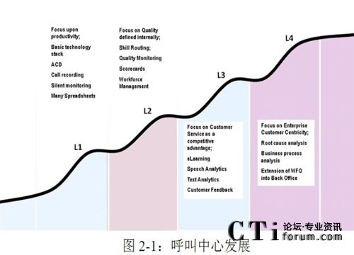 在現(xiàn)實(shí)中,還存在零程度的呼叫中心,這一點(diǎn)并沒(méi)有體現(xiàn)在呼叫中心發(fā)展路線圖上。零程度的呼叫中心就是那些在運(yùn)營(yíng)過(guò)程中并沒(méi)有很好地認(rèn)識(shí)到自己角色以及對(duì)自己未來(lái)的發(fā)展毫無(wú)計(jì)劃的呼叫中心。