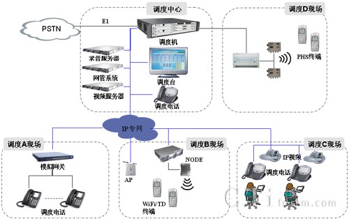 系統(tǒng)支持豐富的調(diào)度終端,包括模擬話機(jī)、IP話機(jī)、視頻話機(jī),以及WiFi/PHS/TD等制式的手機(jī)終端,實現(xiàn)有線無線一體化調(diào)度。