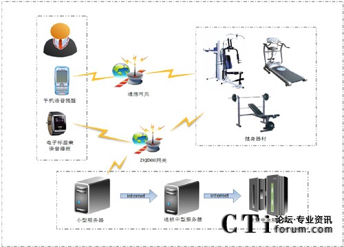 基于物聯(lián)網(wǎng)的綜合信息管理健身系統(tǒng),以下簡稱物聯(lián)網(wǎng)健身系統(tǒng)----IOT Fitness system(IOTFS),本系統(tǒng)是將物聯(lián)網(wǎng)技術(shù)(ZIGBEE、GPRS等傳輸方式)以及語音合成技術(shù)(TTS)的應用集成于一體。技術(shù)方案主要利用無線通訊技術(shù)、射頻技術(shù)、電子技術(shù)、計算機技術(shù)、信息網(wǎng)絡技術(shù)、傳感技術(shù)等高科技術(shù)的設備和軟件所組成,以構(gòu)建完善的客戶健身服務系統(tǒng)和健身房運營系統(tǒng)相結(jié)合的統(tǒng)一的信息管理健身系統(tǒng)。