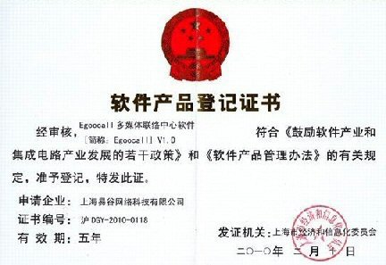 Egoocall多媒體聯(lián)絡中心軟件獲得軟件產(chǎn)品登記證書