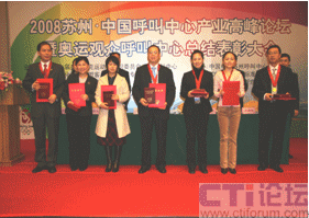 CTI論壇(ctiforum)04月14日消息: 日前,”蘇州 2009中國呼叫中心高峰論壇暨奧運(yùn)觀眾呼叫中心志愿者表彰大會”在蘇州工業(yè)園區(qū)召開,表彰在奧運(yùn)期間對奧運(yùn)呼叫中心作出突出貢獻(xiàn)的十三家志愿者選派單位及先進(jìn)個人。大會由第二十九屆奧林匹克運(yùn)動會組織委員會與中國信息化推進(jìn)聯(lián)盟客戶關(guān)系管理專業(yè)委員會共同主辦,蘇州工業(yè)園區(qū)、CCCS聯(lián)絡(luò)中心標(biāo)準(zhǔn)委員會、ICMI客戶管理學(xué)院(中國區(qū))共同承辦。