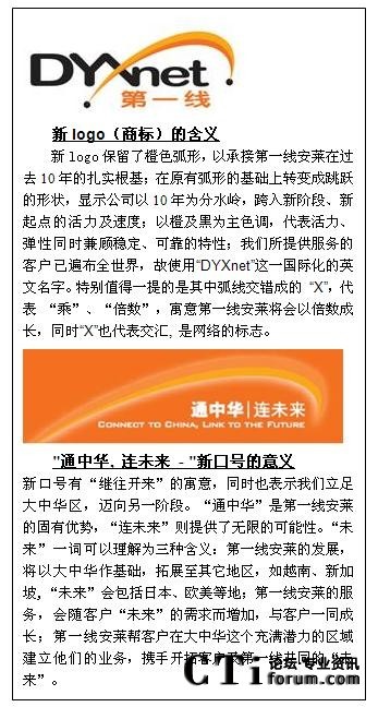 CTI論壇(ctiforum)08月20日消息: 知名網(wǎng)絡服務商第一線安萊,十年間憑借經(jīng)驗豐富的團隊,靈活的服務、可靠的網(wǎng)絡系統(tǒng)等,遙遙領先于眾多競爭對手,傲然屹立于大中華地區(qū)。目前,正值第一線安萊十周年慶之際,全新的企業(yè)商標和“通中華.連未來”的新口號也向大眾展示。公司提出將幫助客戶實現(xiàn)“立足大中華,拓展全世界”的愿景。