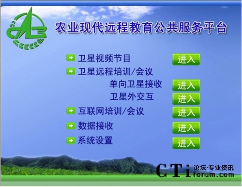 農(nóng)業(yè)現(xiàn)代遠(yuǎn)程教育平臺(tái)將先進(jìn)的多媒體寬帶DVB衛(wèi)星通信系統(tǒng)和全面的網(wǎng)絡(luò)遠(yuǎn)程教育培訓(xùn)/會(huì)議系統(tǒng),天(衛(wèi)星網(wǎng))地(互聯(lián)網(wǎng))合一,集成廣播、電視和網(wǎng)絡(luò)的功能,形成了廣覆蓋、大容量、多功能、低成本、快捷高效的遠(yuǎn)程教育培訓(xùn)網(wǎng)絡(luò)、技術(shù)培訓(xùn)資源傳輸通道和網(wǎng)絡(luò)視頻會(huì)議系統(tǒng),是面向“三農(nóng)”開(kāi)展多形式多層次現(xiàn)代遠(yuǎn)程教育培訓(xùn)、科學(xué)普及、技術(shù)推廣和信息傳播的公共服務(wù)平臺(tái)。同時(shí),該平臺(tái)也是首個(gè)將視頻會(huì)議/培訓(xùn)接入衛(wèi)星網(wǎng)絡(luò)的系統(tǒng),將遠(yuǎn)程視頻會(huì)議帶入了新的通訊領(lǐng)域,也為遠(yuǎn)程視頻會(huì)議的運(yùn)用開(kāi)創(chuàng)了一片新的天地。